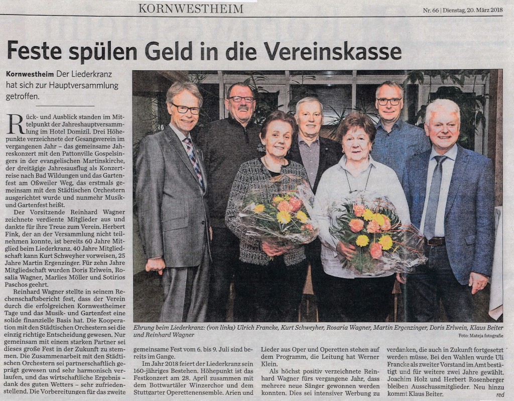 Pressebericht der Hauptversammlung des Liederkranz Konwestheim
